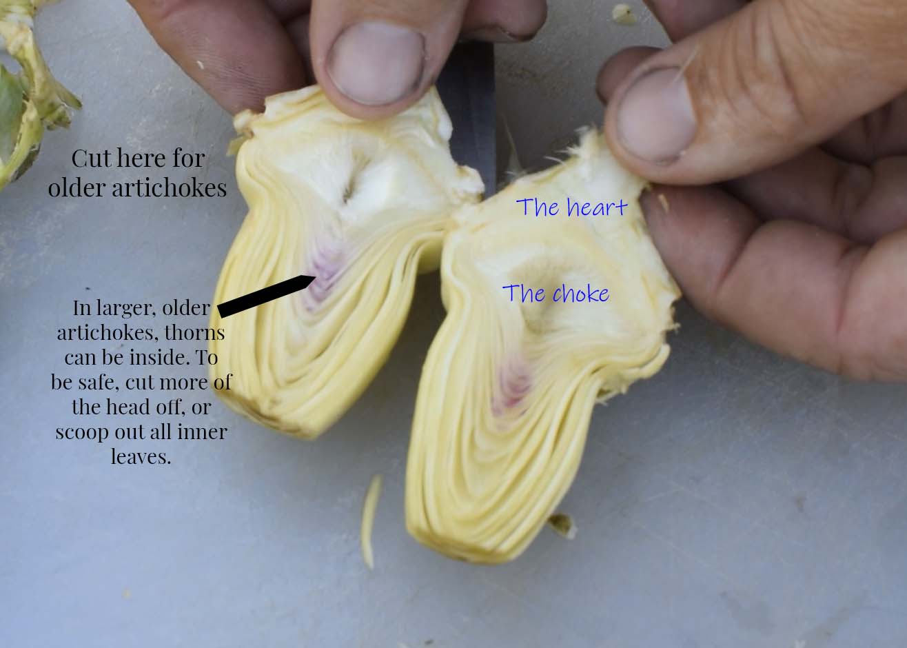 Important NOTE: in this recipe and video we used smaller, young artichokes. If using older or larger artichokes, always inspect for tough or thorny leaves on the inside. You might have to remove or cut off more of the artichoke.