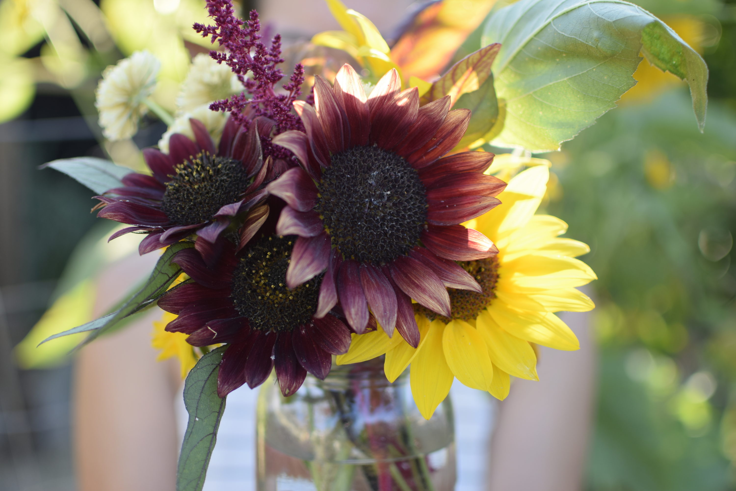 Now that you know how to grow sunflowers, let’s chat about saving your own seeds so you can grow sunflowers for years to come! In general, I tend to cut half my sunflowers for arrangements and leave half to go to seed. If you would like to collect seeds for saving and planting, you will have to let the sunflowers stay on the plants until the heads droop and turn brown on the back. At this point, the seeds are mature and ready to harvest!
