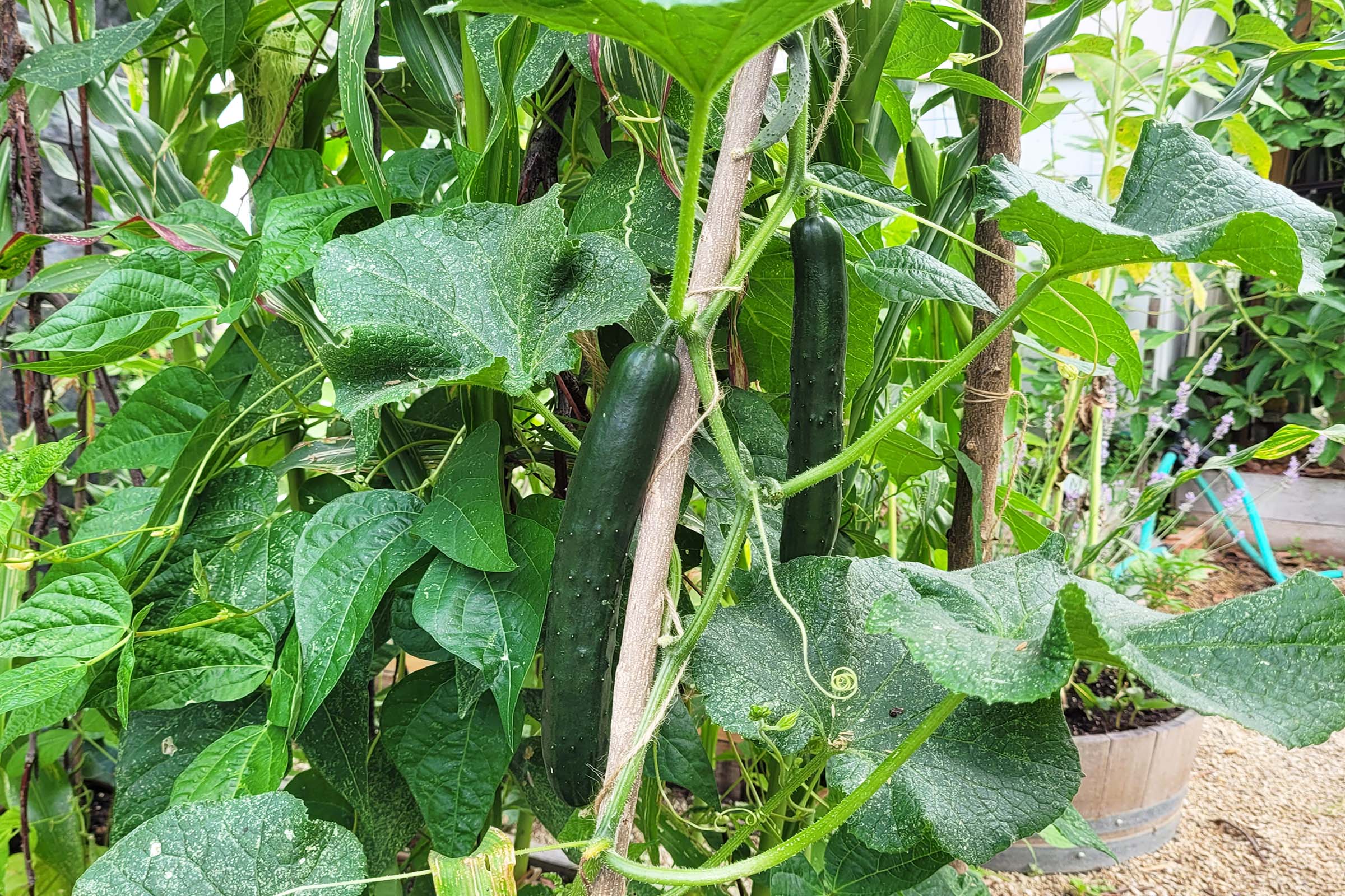 Cucumbers typically need some support. While there are some bush varieties of cucumbers, most are climbers and will need some support. You can check out my article on Vertical Gardening Ideas if you need some inspiration for trellises and other ways I grow vertically in the garden.