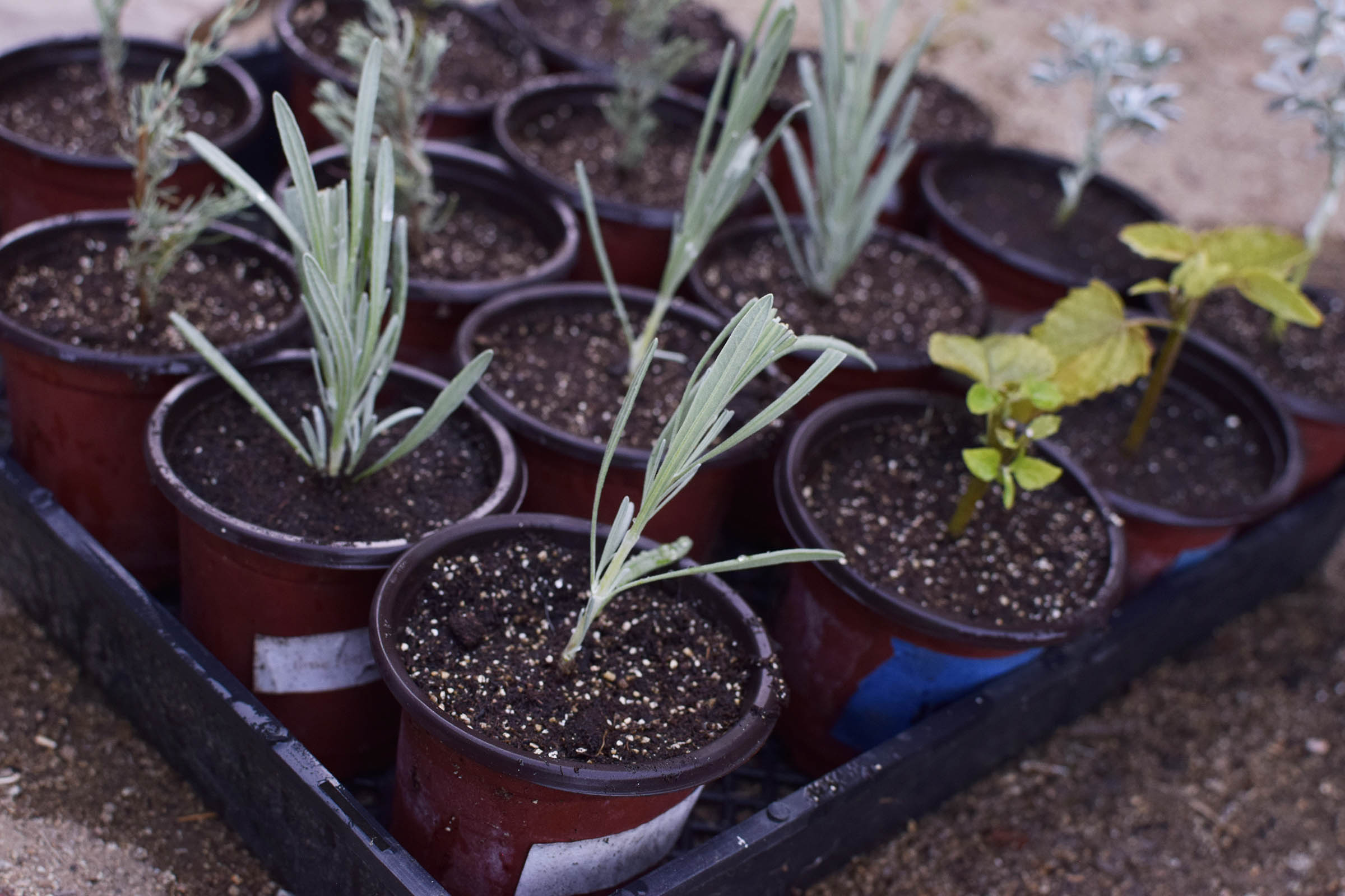 ♦Containers. Propagation relies on keeping the soil moist, so containers that are too large or too small can be more difficult to maintain. My preference of container are 4″ pots. The size of your cuttings will also influence your container choice. Large plants with really thick stems, like figs, would benefit from larger or deeper containers.