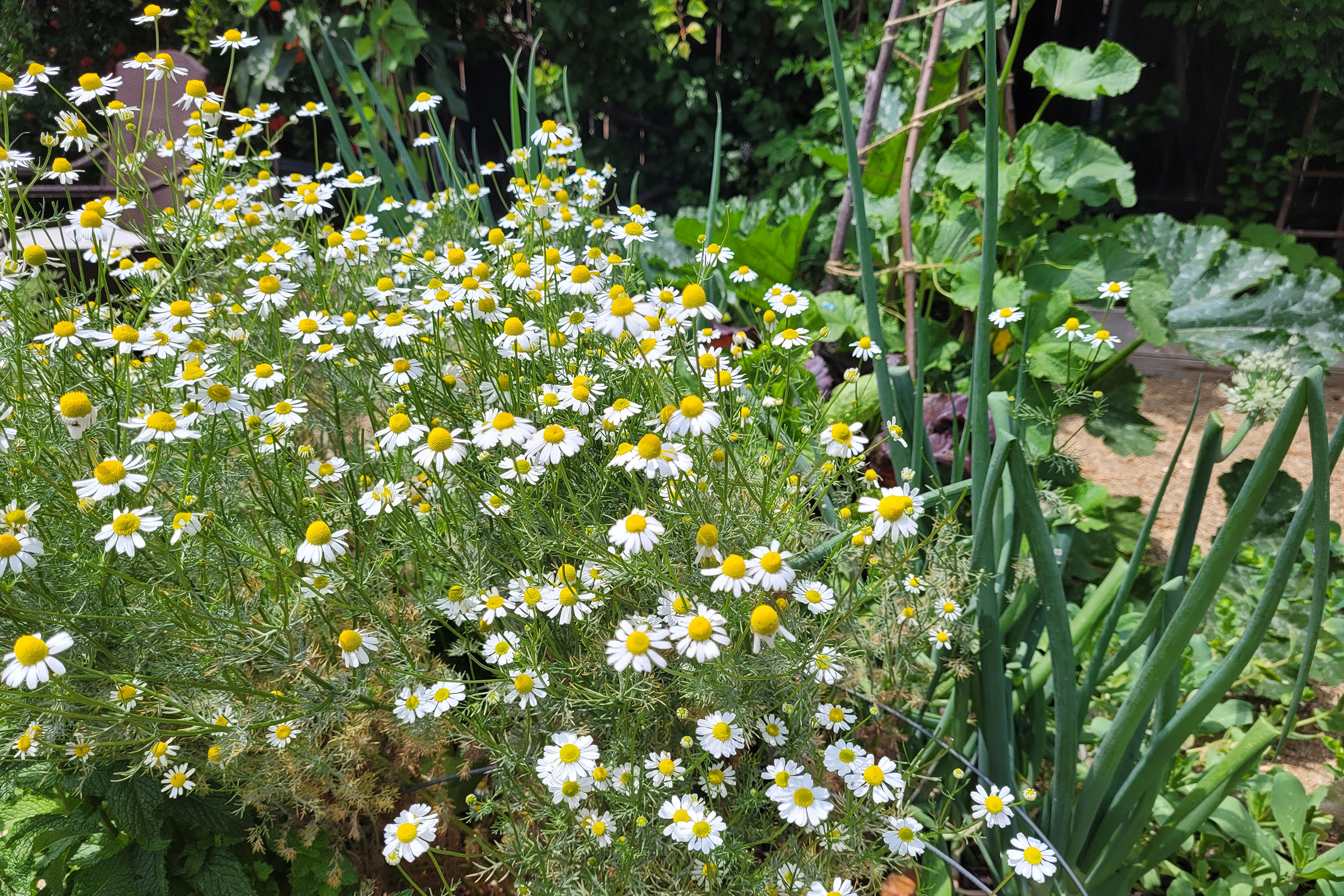 In my garden, I grow German chamomile (chamomilla recutita). It’s honestly the only type of chamomile I’ve ever grown, although I know that some gardeners also grow Roman chamomile. Both types have different growing habits, and I’m sure herbalists might have a preference on which one they use. Update 2023: I now have a Chamomile Grow Guide if you’d like to grow your own too!