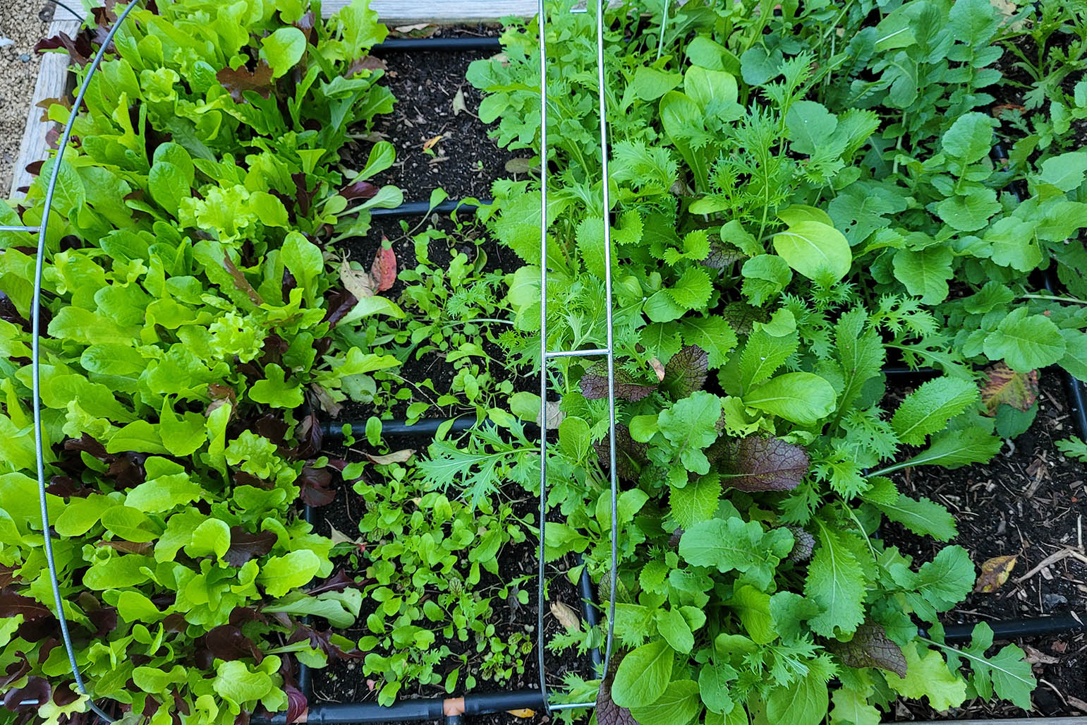 A newer habit I’ve started in Winter is to have a raised garden bed dedicated to cool weather crops that do well when directly sown. You can see the picture below (updated December 2021) that has patches of lettuce. One variety is spring salad mix, another is an asian baby leaf salad mix, and I gradually succession sow the other patches as the season goes on. This whole process has been made extremely simple by installing a Garden-in-Minutes Garden Grid.