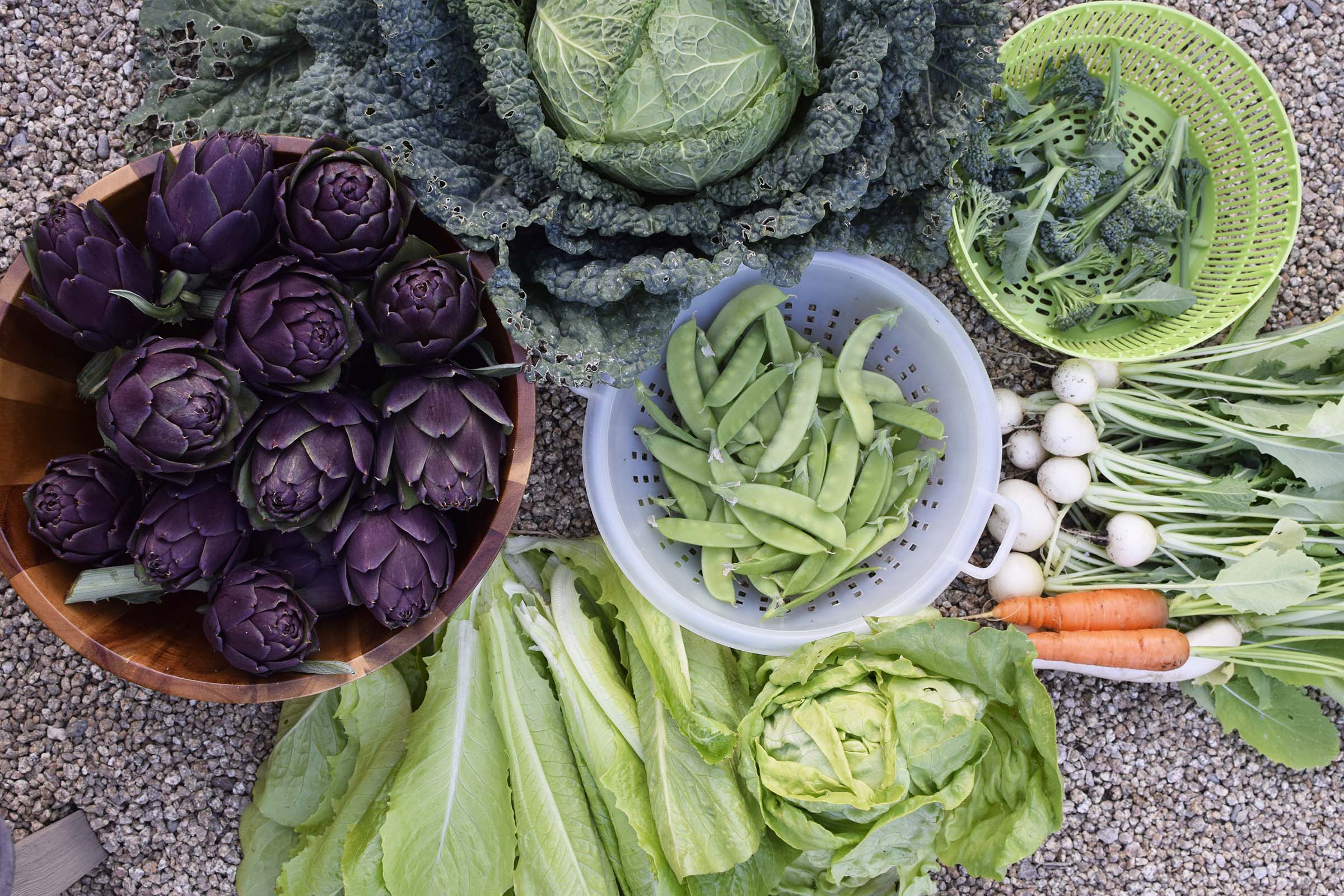 Funny story, I used to LOVE to plant my crops haphazardly, with no straight lines or rows. I definitely disliked growing vegetables in an orderly fashion—it looked too sterile for me. I wanted romance and charm, which I thought meant avoiding organization! I was wrong! In the last year I’ve discovered a passion for growing in rows and mass plantings. Growing in a more orderly fashion lets me care for each crops’ specific needs more efficiently and made harvesting and seasonal switch-overs easier. In the end, I was able to space my plants more efficiently and had more success growing overall. That being said, growing more orderly doesn’t mean you can’t mix colors, textures and different crops to still create a beautiful garden!