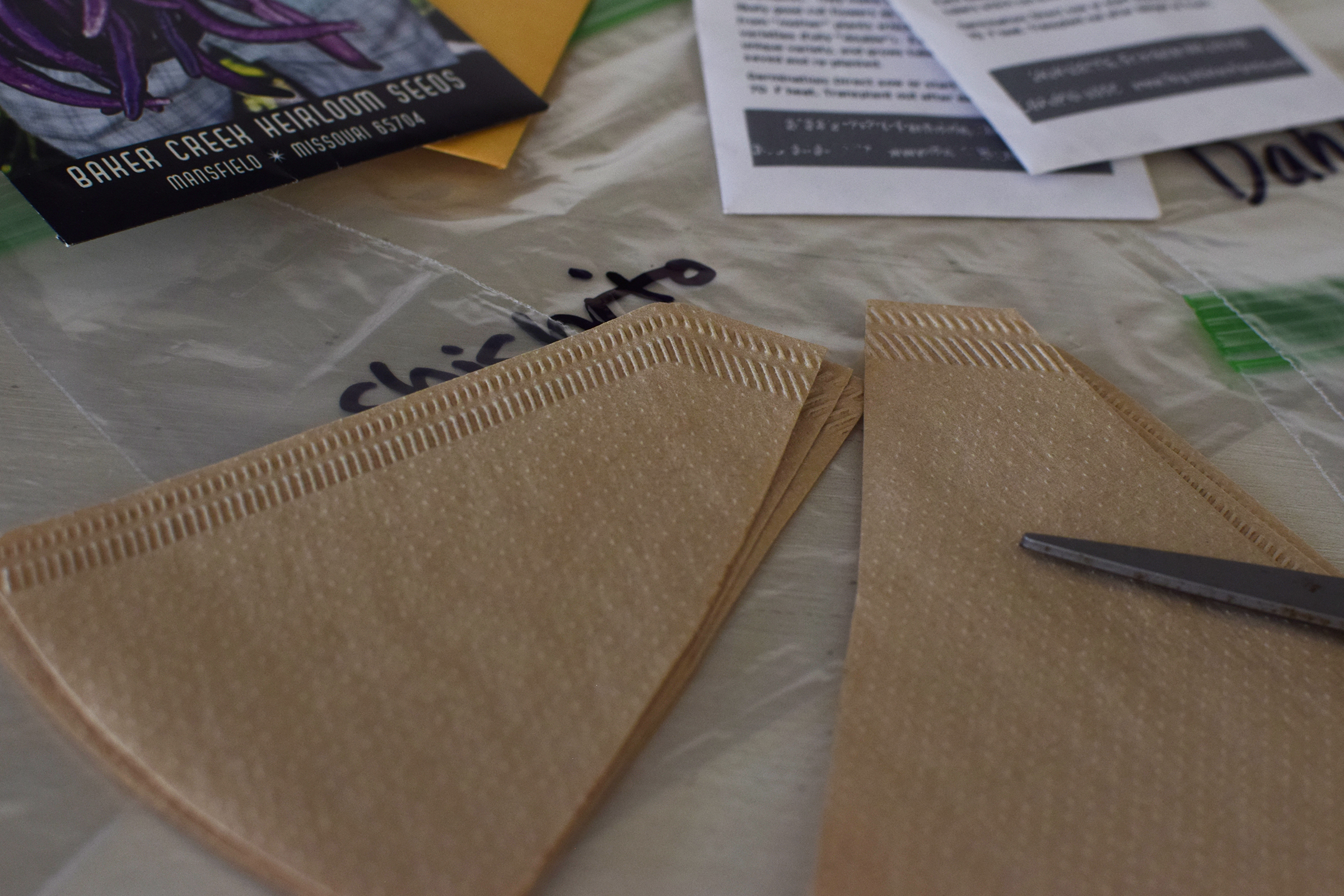 Put your seeds on the moistened towel or filter and fold it down over the seeds.