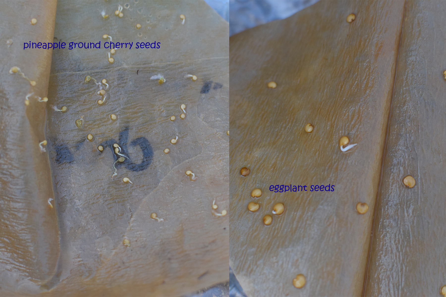 Assemble your seeds. For this article I started some shishito pepper seeds (they make the best fire roasted appetizers), pineapple ground cherries, and eggplant. You might notice that all these seeds like heat and so I used my heat mat as well. Note: I also tried a few dahlia seeds with this method but I don’t recommend it as much for them. I had a better experience growing mine in seed starting mix.