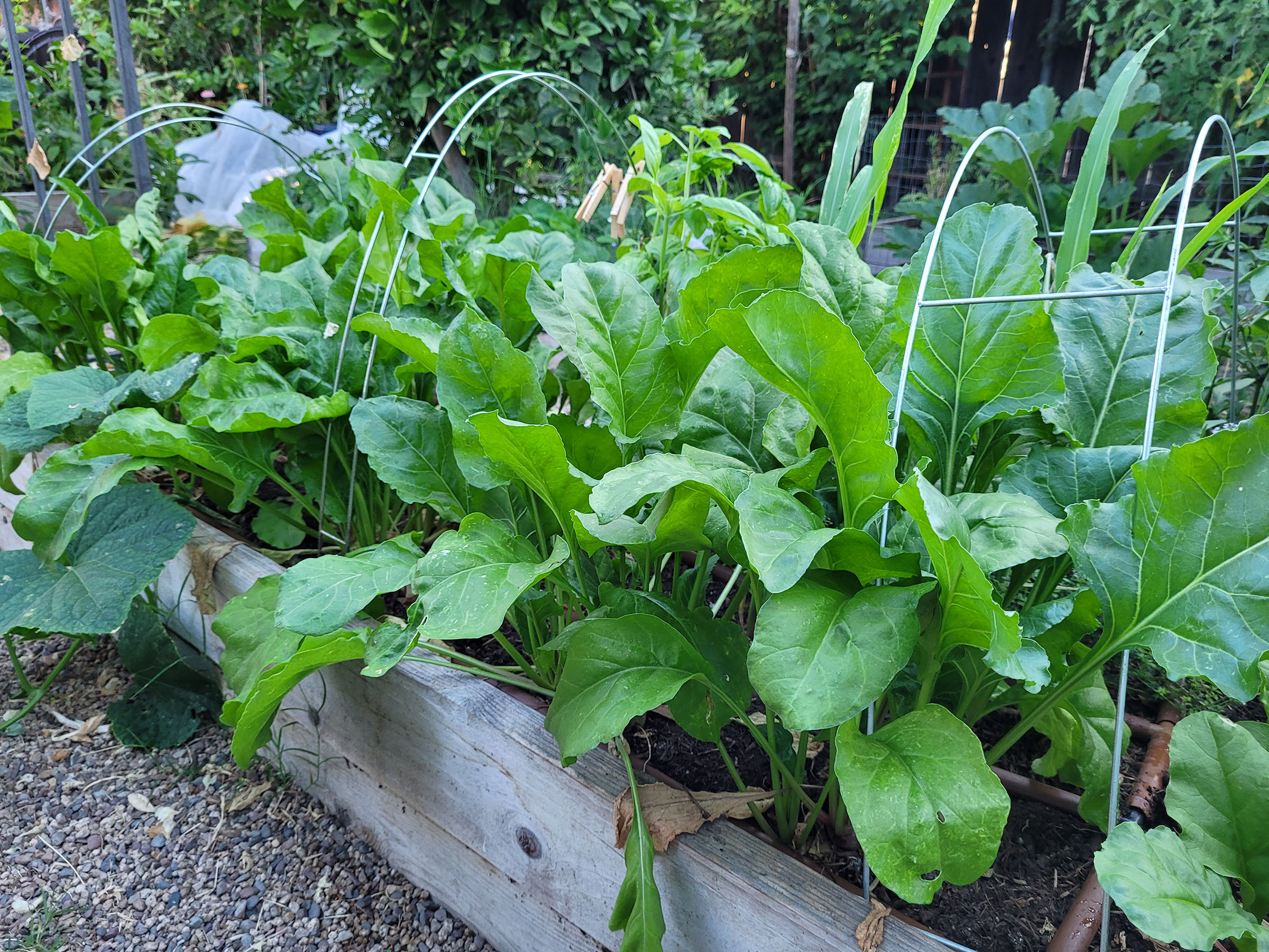 Confused? I’ll do my best to clarify. I tried beets in two areas, and the area that received full sun was the only one where the beets matured and formed nice bulbs—but there was a caveat! They REALLY flourished when shaded by fabric row cover during the hottest point of the day if the weather was hot. For instance, we often have days in the 90s during our shoulder seasons. This probably is not applicable if you are growing mainly in the cooler months. If you see the photo above, you can see my fabric row cover, clipped up on the edges. I use agribon-19, which lets in 90% of light. The beets LOVED being slightly shaded on the hottest days. You can also view the full tutorial on how to install DIY fabric row covers HERE.