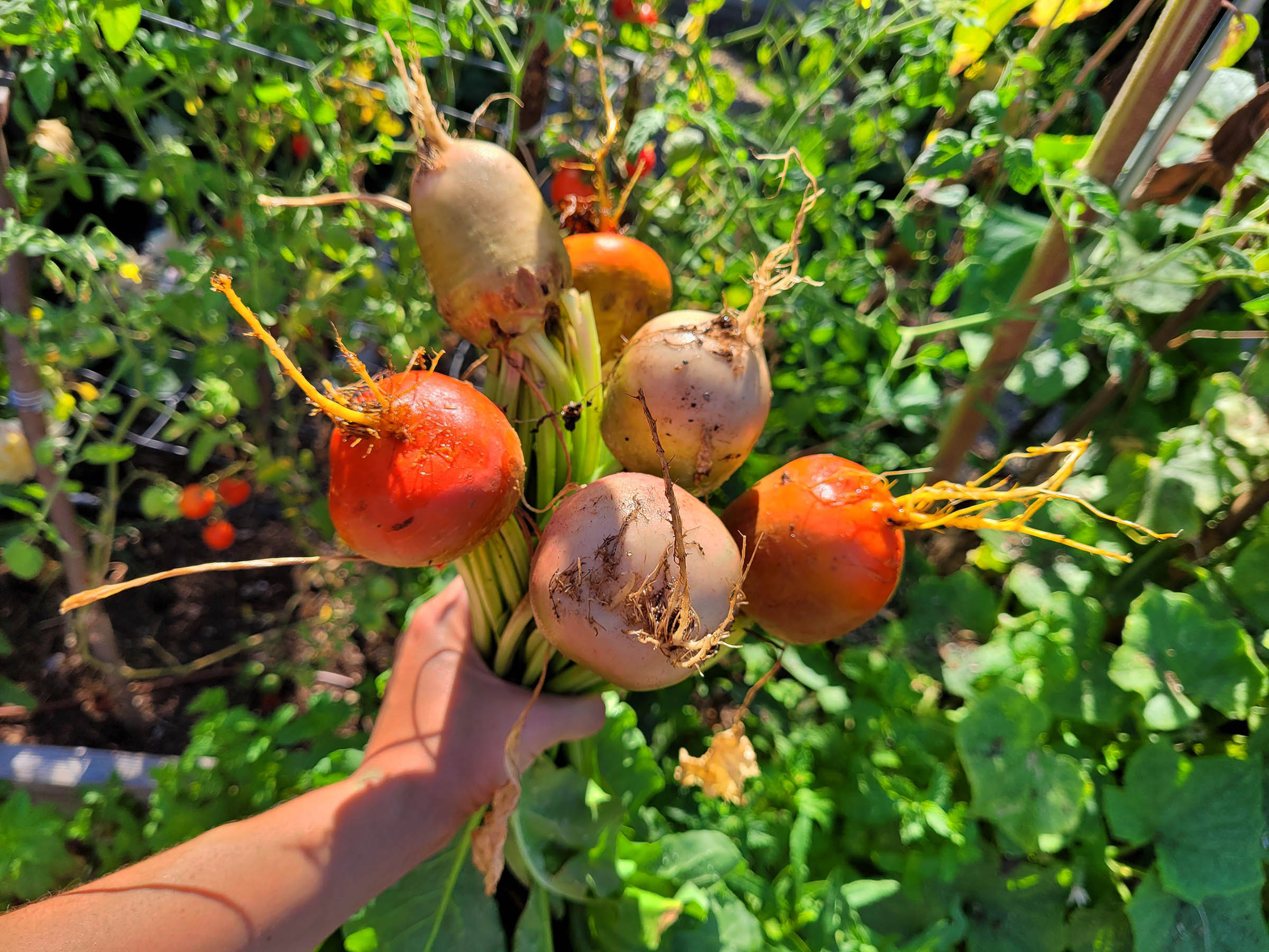 This year I decided to stay up on my watering. We installed drip lines in some beds and garden grids in another. However you decide to water, beets still benefit from consistent water. I noticed their root system wasn’t really deep, so they did require more frequent watering in our hot climate (plus mulch!) to stay happy.