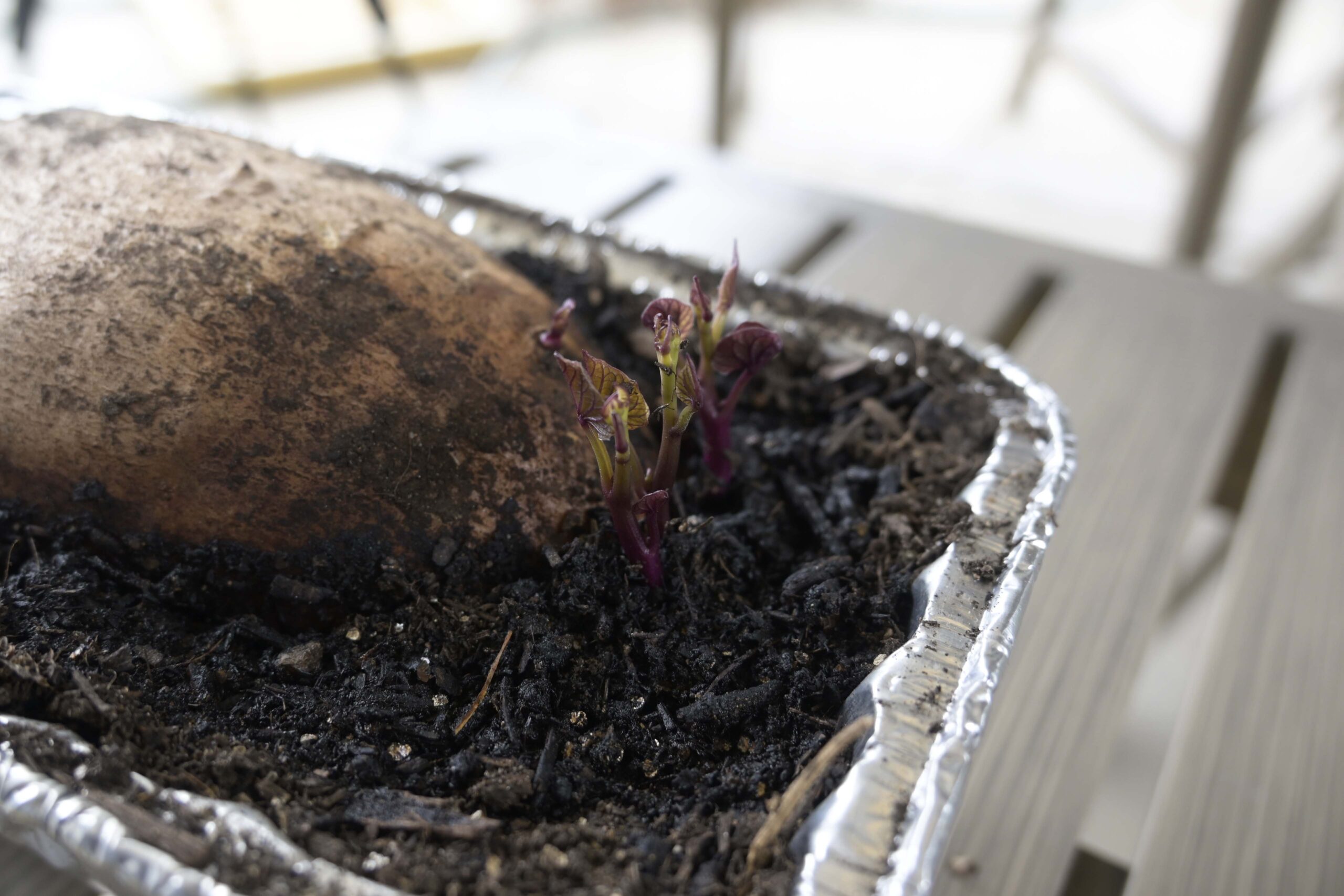 The first step to making sweet potato slips is to obtain cuttings or the leafy sprouts off a sweet potato. From observing in my own garden, there are several ways to get cuttings from your homegrown sweet potatoes like: