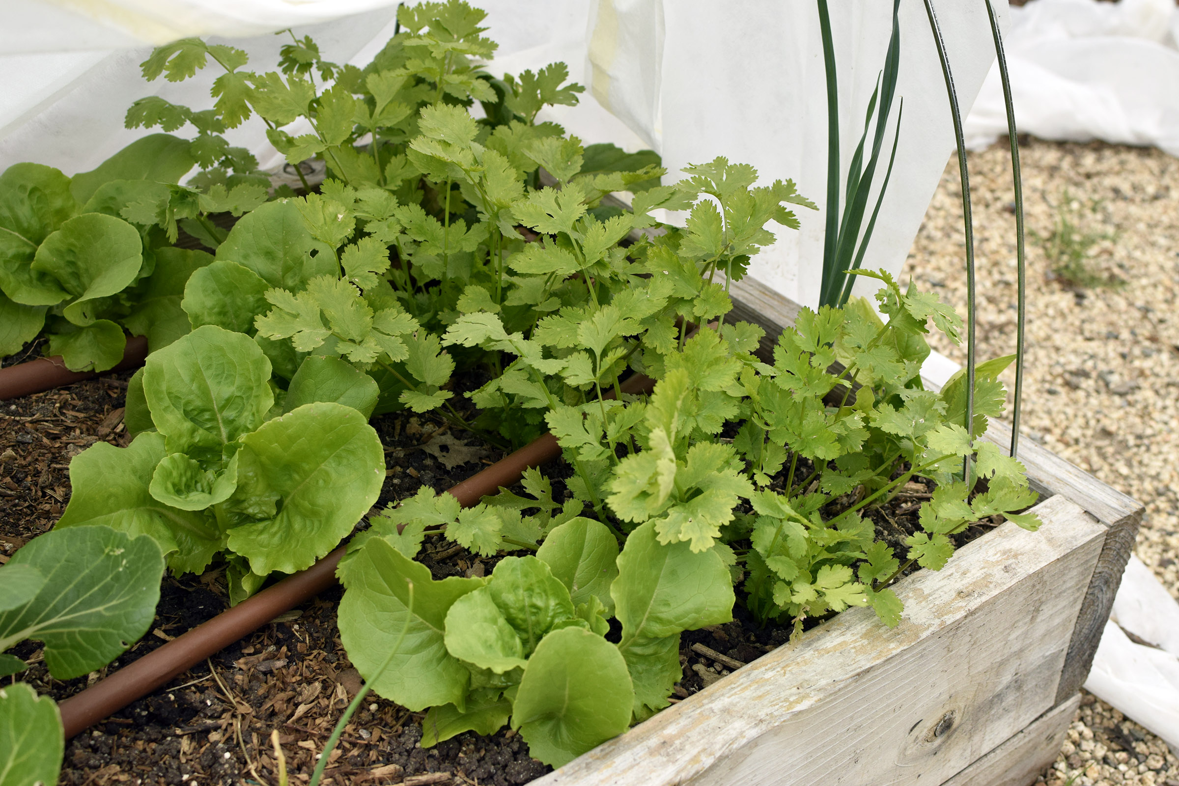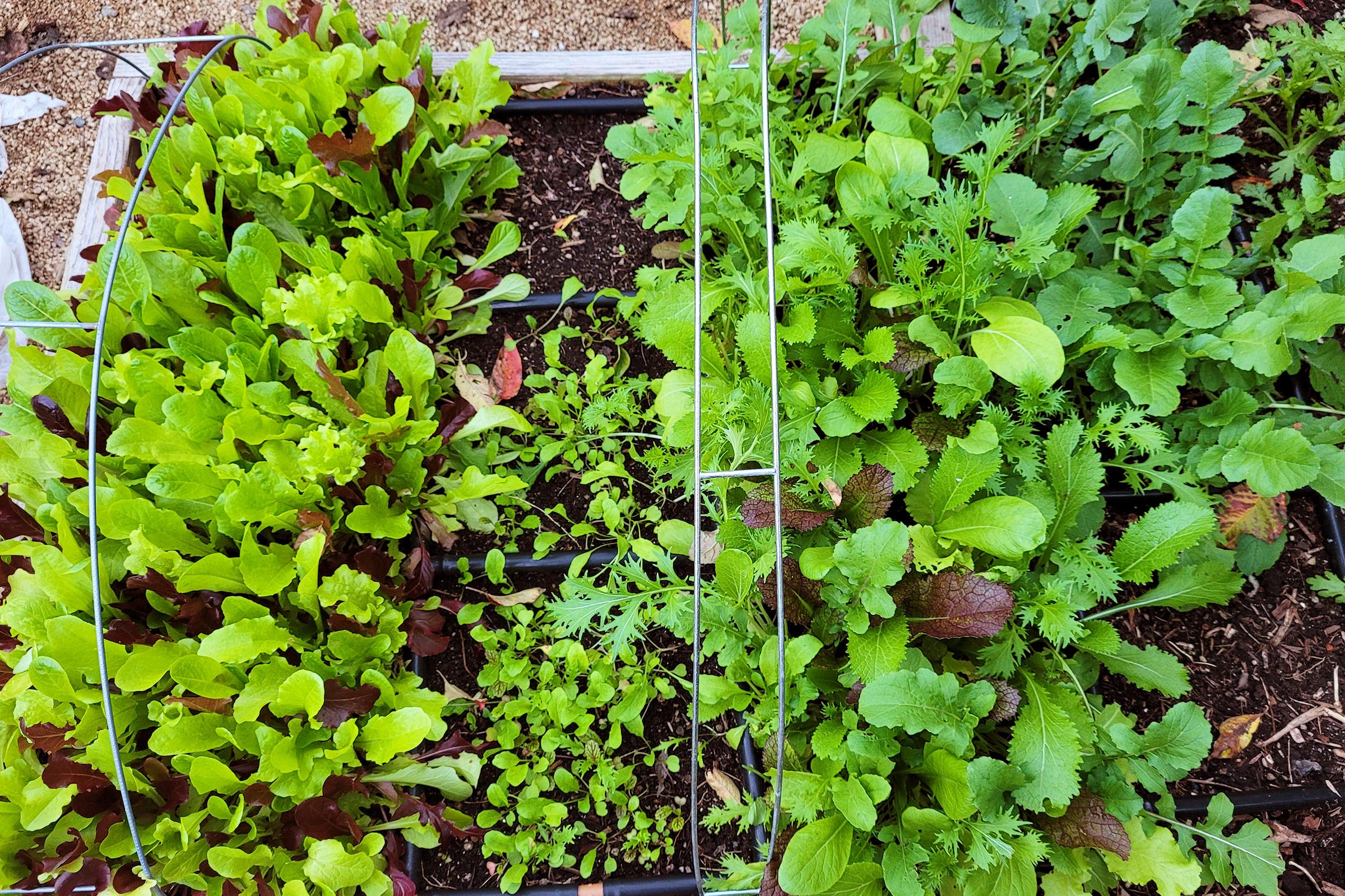 A second “cut and come again” method can be used for heading lettuces and even other cool season crops such as kale, bok choy, mustard greens, and more! Basically, you will simply harvest the outer leaves of each plant and leave the middle alone. If you look closely, new leaves emerge from the middle of the plants, so removing only the outer leaves allows the plant to continue growing (and actually promotes growth) and provides harvests all season long.