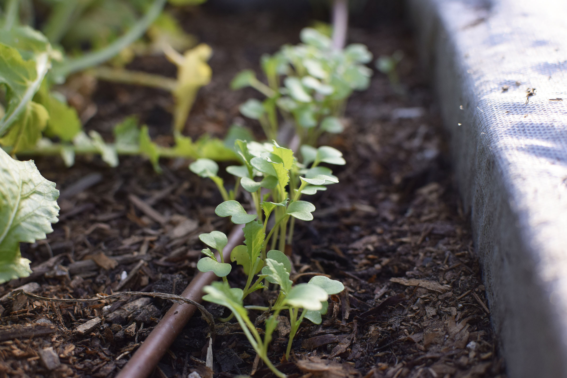 If you’ve read about Direct Sowing Versus Transplanting, you might know that I make those choices based on a few different variables in my garden. In regards to radishes and turnips, I pretty much direct sow them 99 percent of the time! My area for growing turnips right now is this small strip of space in my raised bed garden. I’m not going to bother amending the soil any further or adding any fertilizer because root vegetables don’t really need much nitrogen anyway—-and I fully amended my raised beds (read about my process HERE) at the beginning of the Winter season.