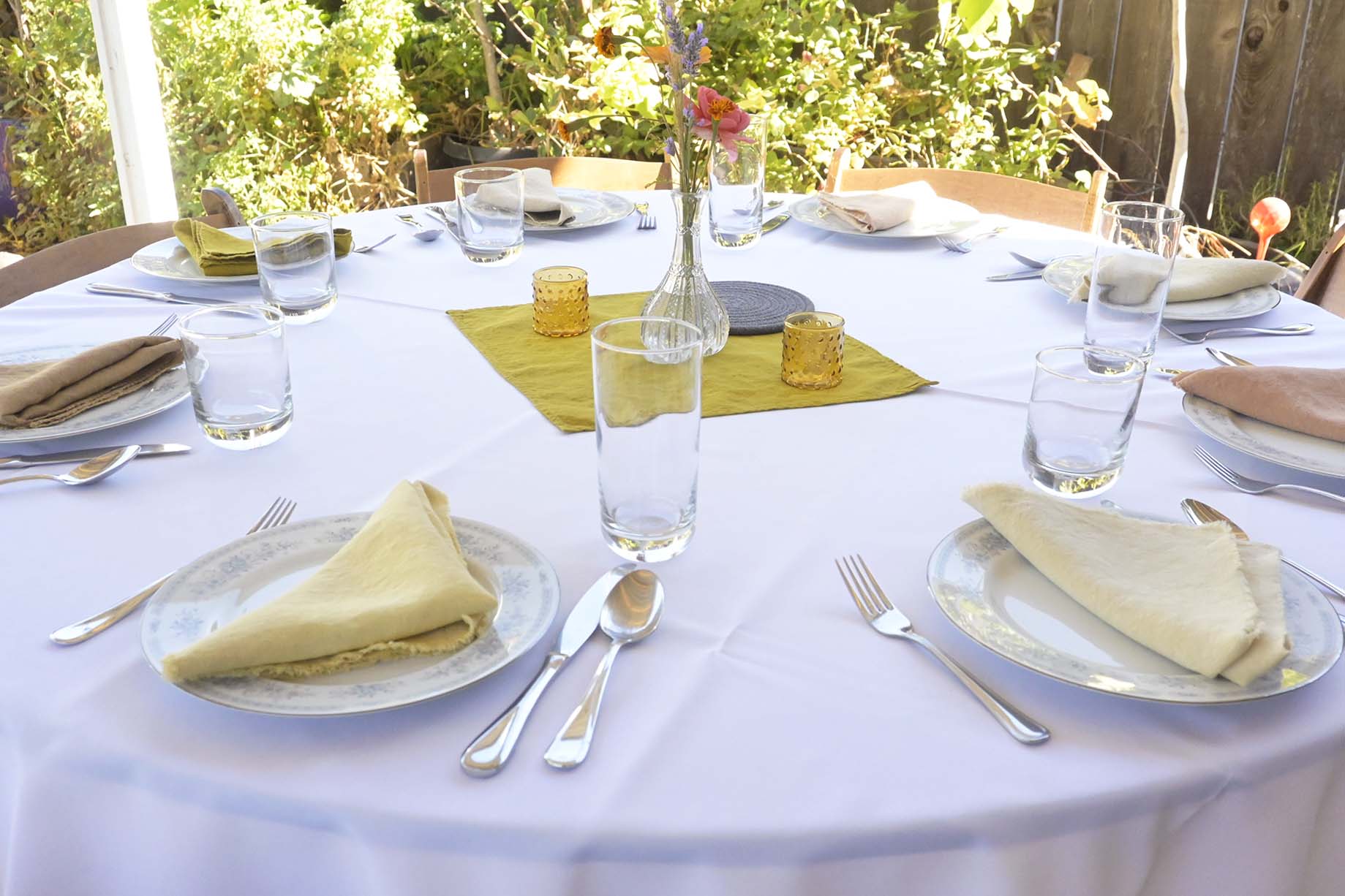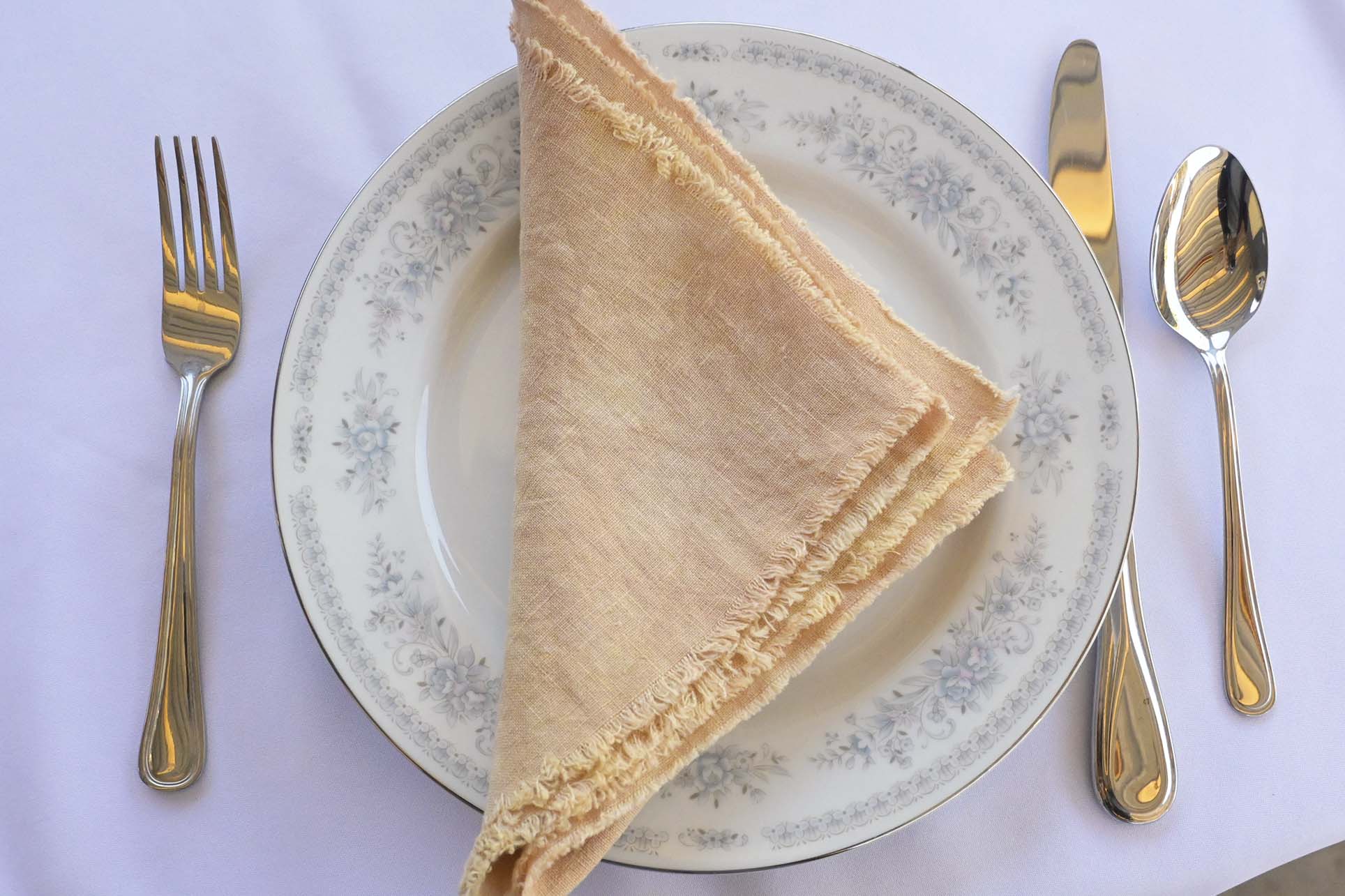 This is only the second year that Sam and I have hosted Thanksgiving. If you’ve been with us for a while, you’ll know that our home is about 715 sq feet, so any hosting we do is outdoors. Suffice it to say, hosting Thanksgiving for 16-20 people is a really fun challenge. To make up for the fact that we only keep about a dozen dinner plates and half a dozen bowls in our kitchen at any given time, our family members contribute various dishes, cups, and silverware from their own homes to help this all come together. Granted, this year I opted to rent tables and chairs (a fantastic decision for my sanity by the way). Overall, it appears that our Thanksgiving tradition has kind of become a creative endeavor, hence the reason I wanted to naturally dye a whole set of linen napkins.
