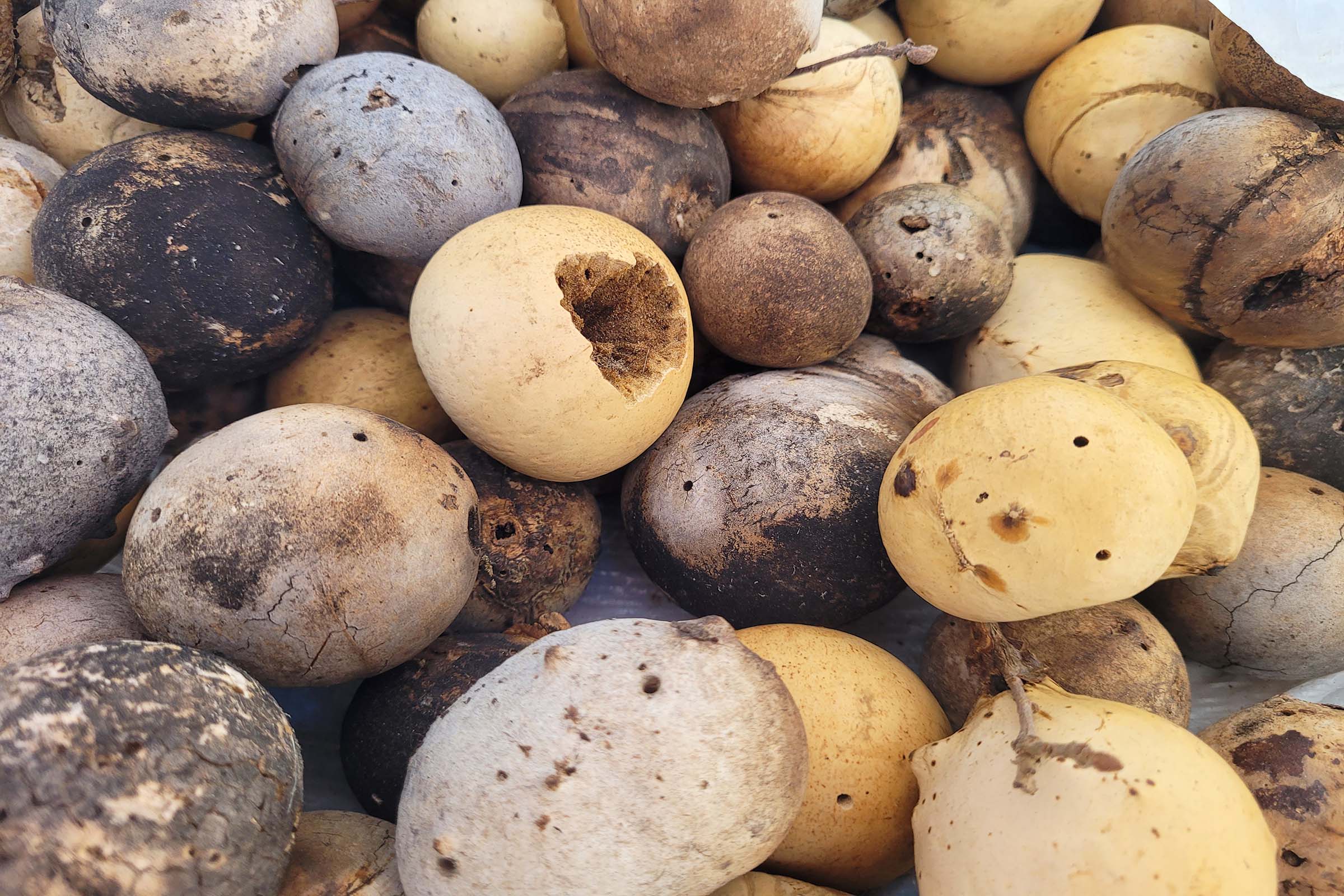 To start, I washed my fabric in the washing machine and then got my oak galls ready for the first step of the mordanting process.