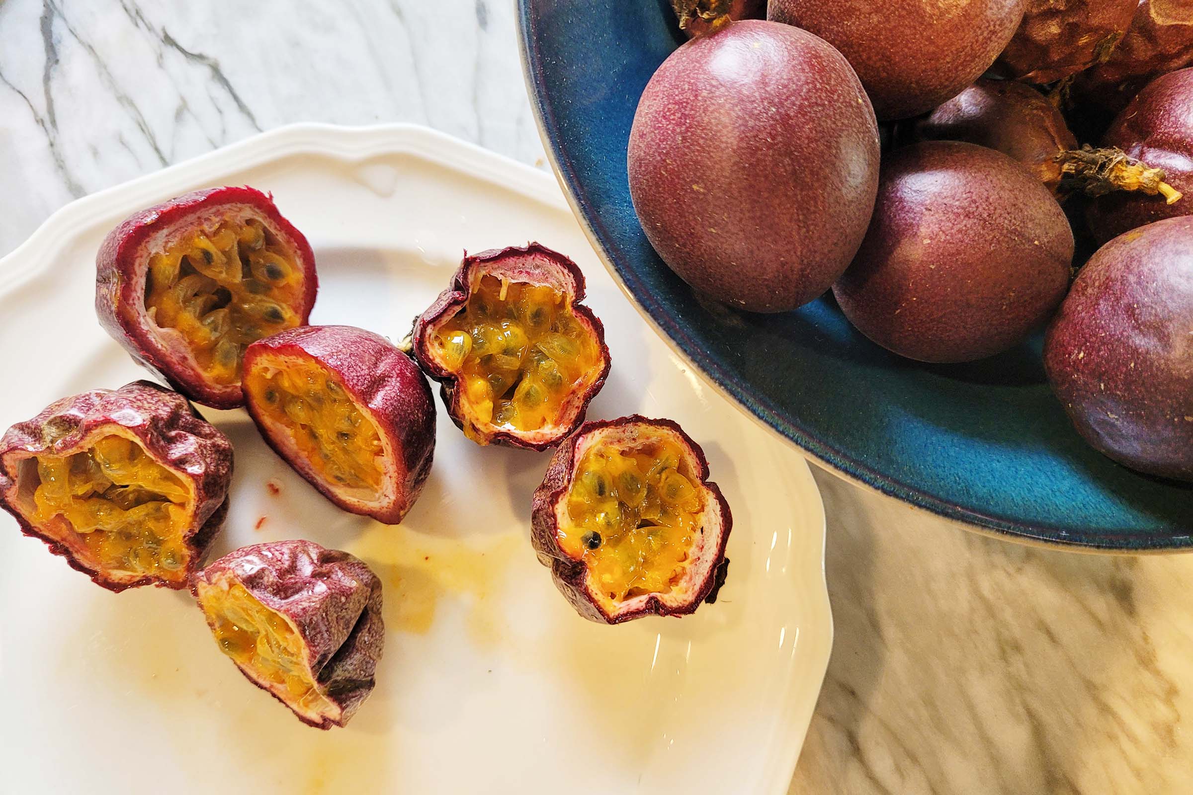 Before I continue, passion fruit is an amazing vine that can be grown in mild winter climates (typically zones 8 and above). I have lots of information on growing, propagating, harvesting, and storing passionfruit on the blog if you are interested in adding this valuable crop to your garden. For my area of Southern California, passion fruit starts to ripen later in the Summer (I originally made this dish in September), but there are also passion fruit that hang around through Winter—they just ripen more slowly.