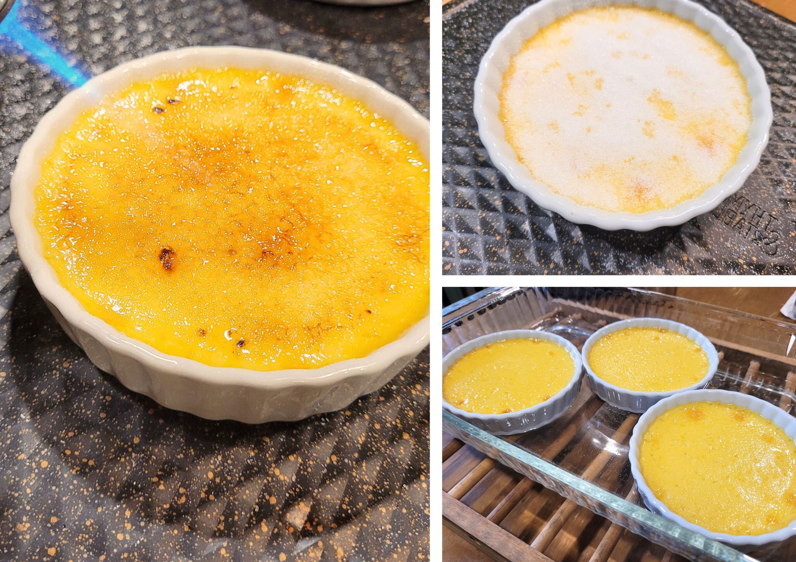 When it comes to the actual act of caramelizing the sugar before serving, I learned something very important. The strength and quality of the torch is going to effect your approach! For instance, our culinary torch is super cheap and weak, so I had to get in closer than I expected to melt the sugar. A friend of mine (who is an incredible cook) told me to start with the torch farther away from the sugar than you’d expect, and then gradually move in closer as you see how it works. Also, move the torch back and forth in small strokes instead of staying in one spot as you go. Make sure you’re torching the sugar though, and not focusing on the edges of the ramekin because you don’t want to heat that. Lastly, the process of caramelizing the sugar happens fast, and the sugar will cook slightly more once you remove the torch. Stop the torch when the sugar starts to turn golden and bubble. It sounds a little intimidating, but if I can do it, you can!