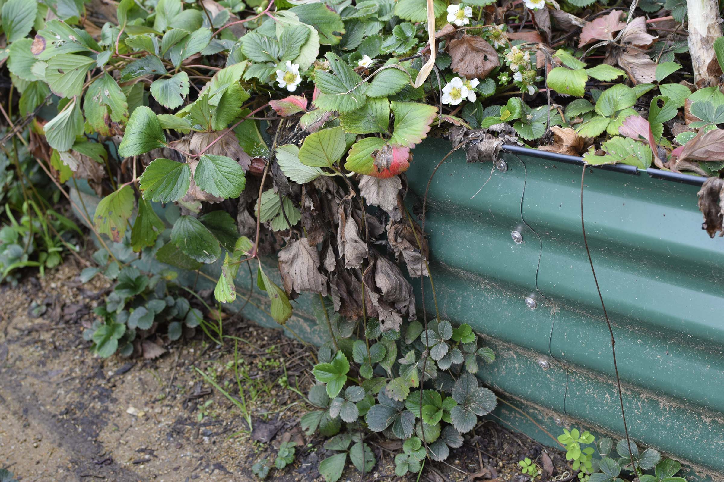 The rest of my strawberries are ever-bearing varieties, which essentially means that they could produce multiple crops a year. Being in Southern California, this is where I notice that the ever-bearing strawberries never seem truly “dormant” and this can make it hard to determine when to renovate and amend strawberry plants. Personally, I say don’t worry too much about it here.